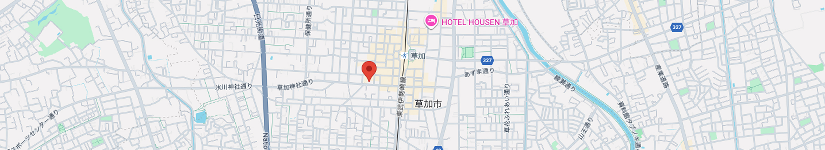 電車でお越しの場合 :東武スカイツリーライン草加駅下車 西口徒歩5分